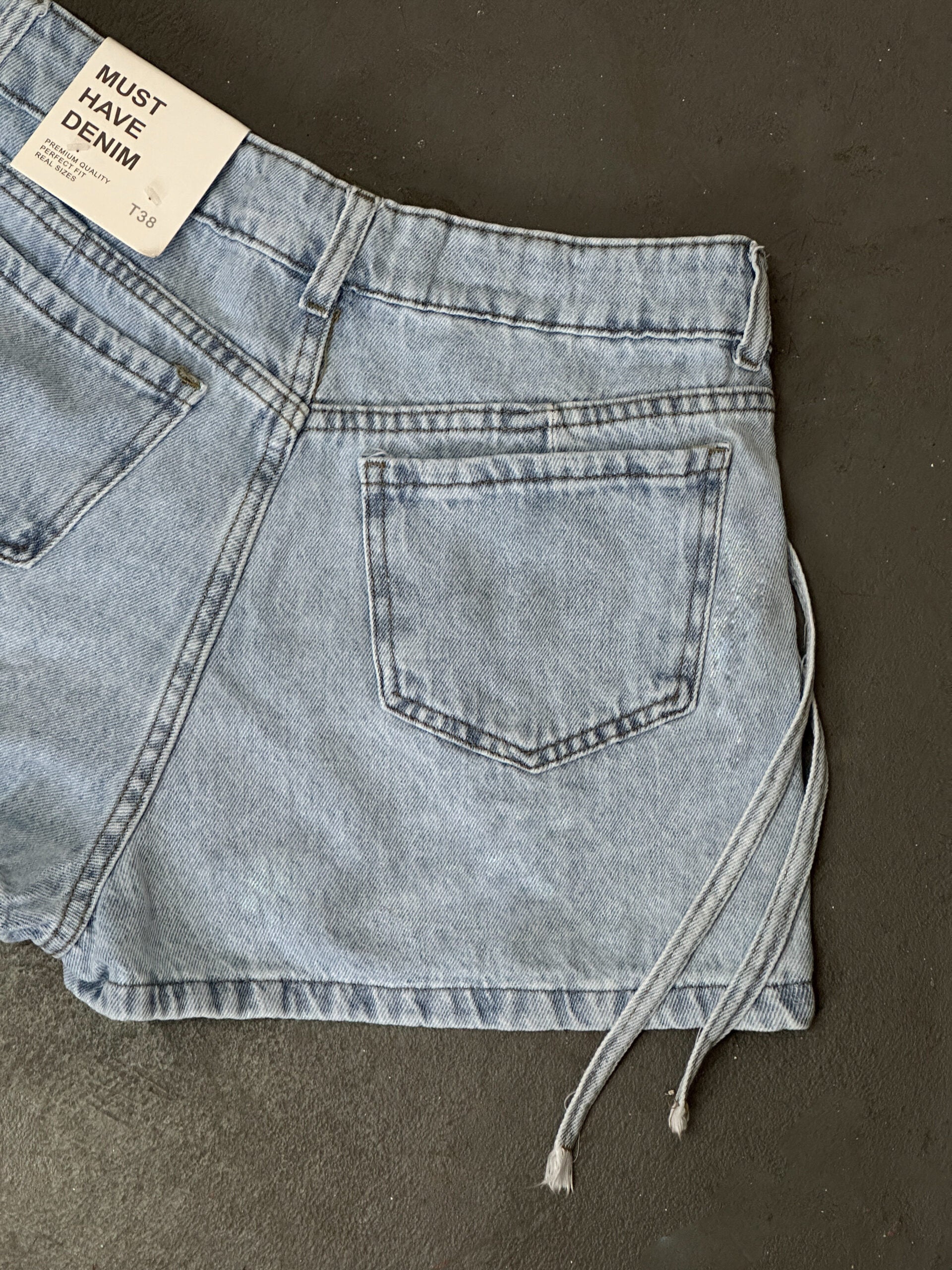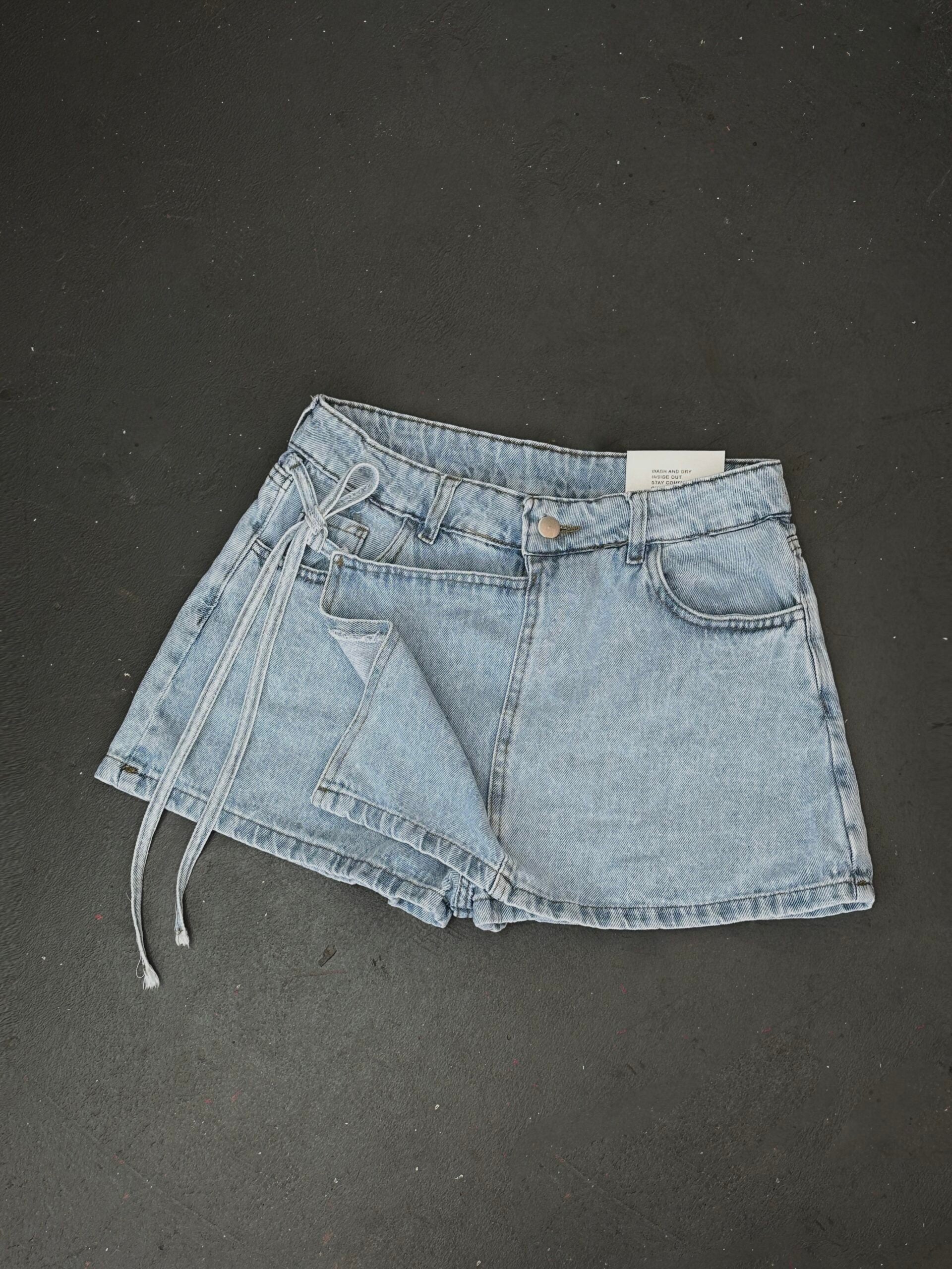 Short pollera con solapa y Strap de denim rígido.